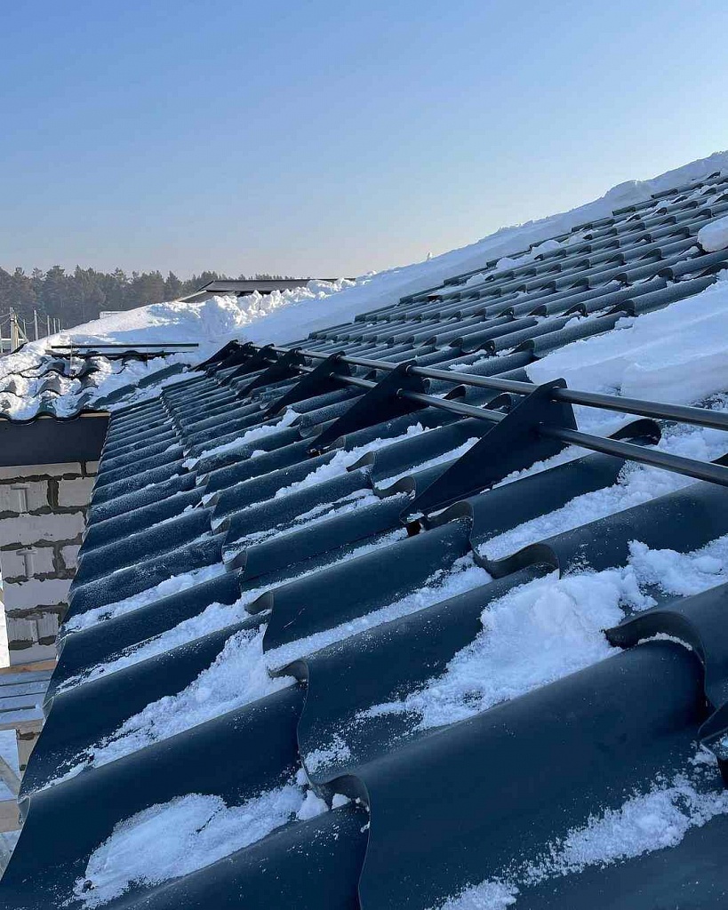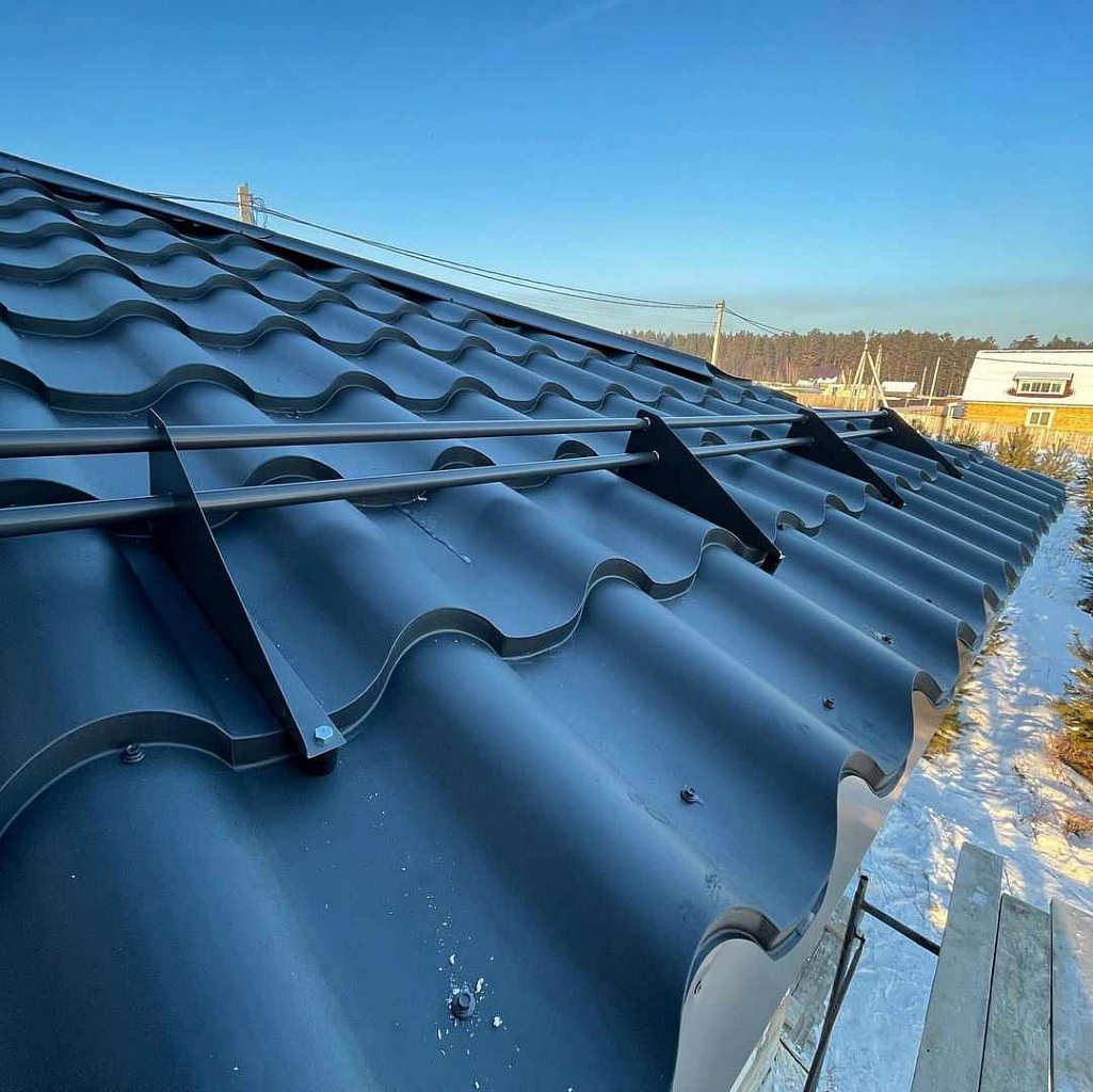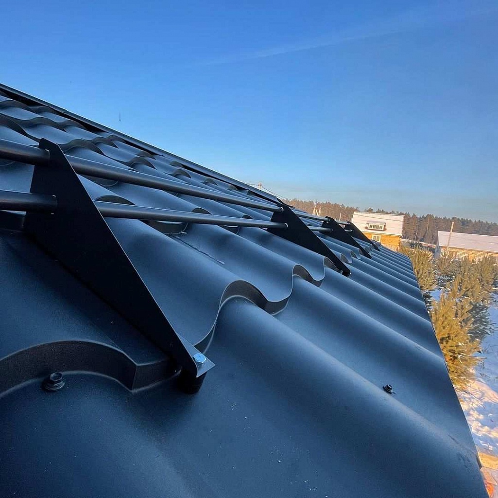 Функция снегозадержателей состоит в том, чтобы предотвращать сползание или неконтролируемое обрушение во дворы или на придомовые постройки снеговых наносов, осевших на кровле после снегопадов. Весь объем выпавших осадков должен удерживаться находящимся на ней устройством вплоть до полного его стаивания.